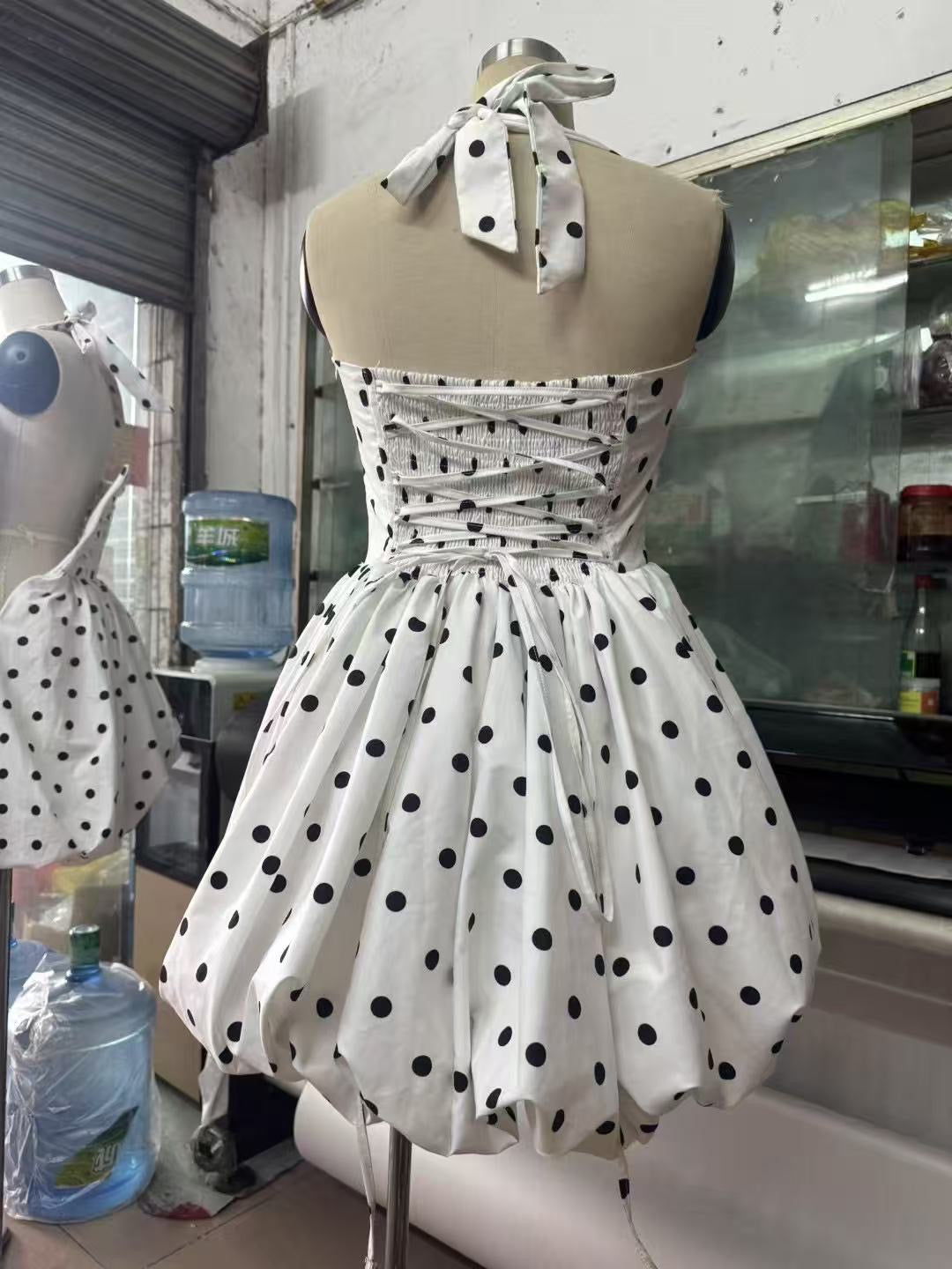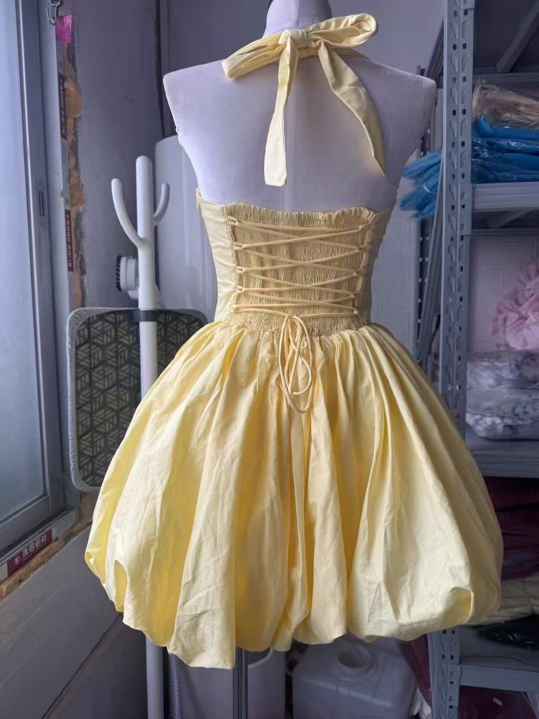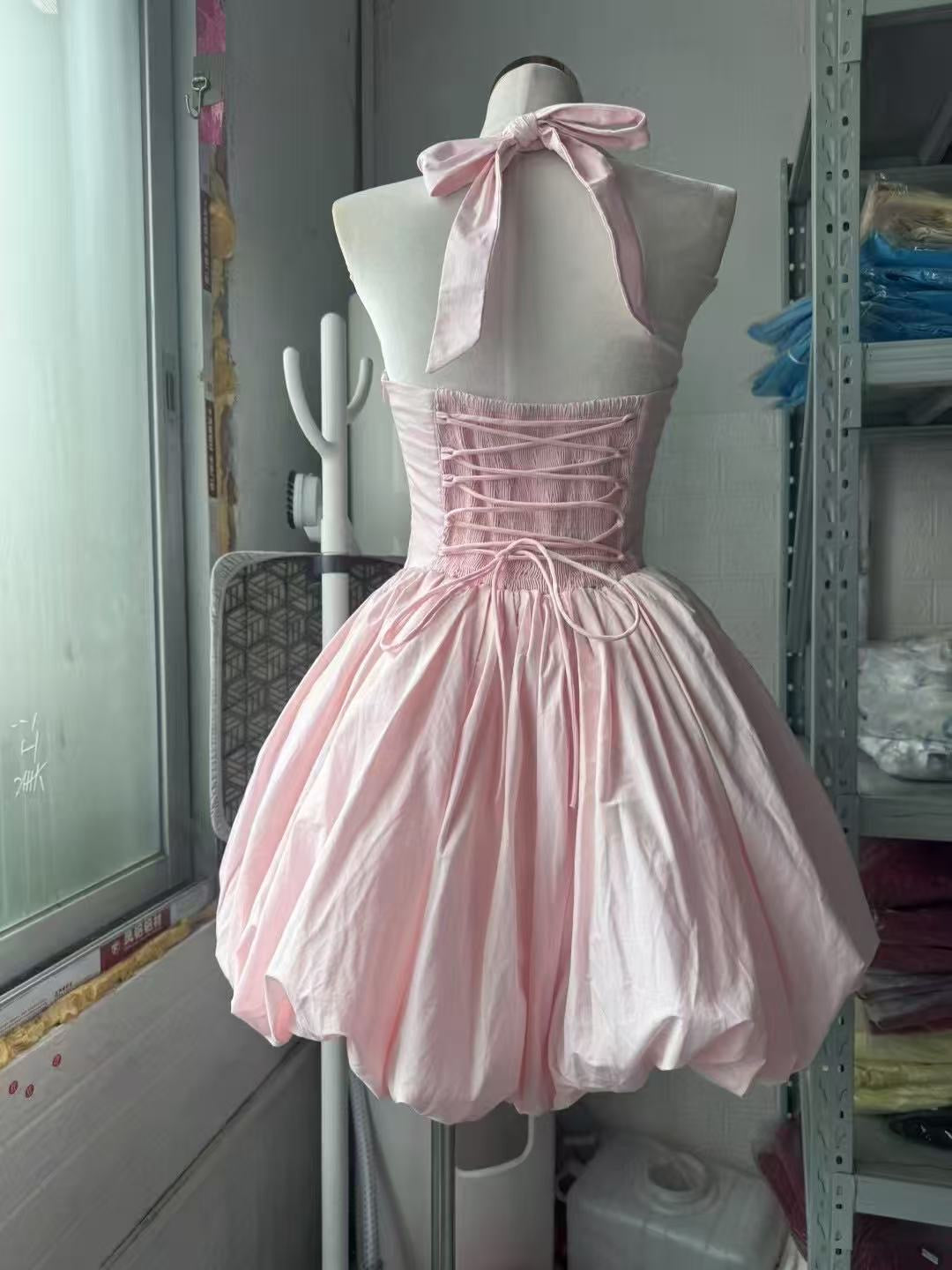 Playful halter mini dress featuring a structured bodice and voluminous bubble skirt. Perfect for parties, dates, or stylish brunches.