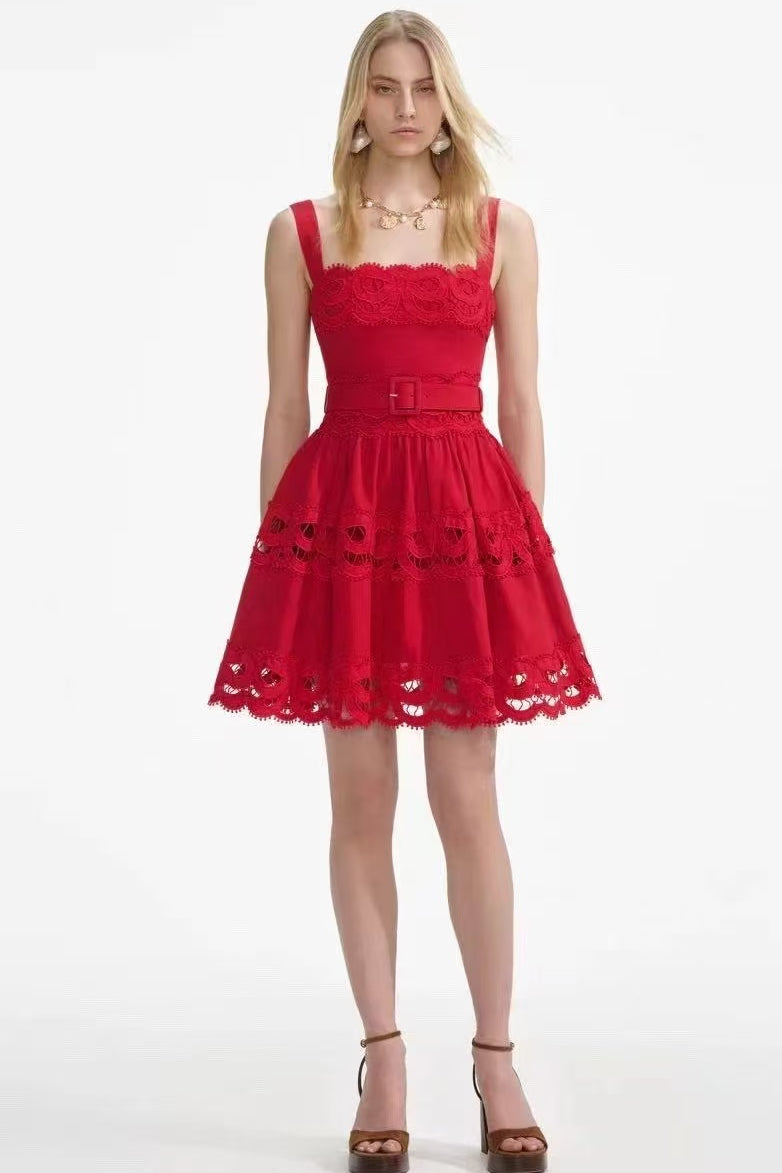 Crimson Ruffle Corset Mini Dress