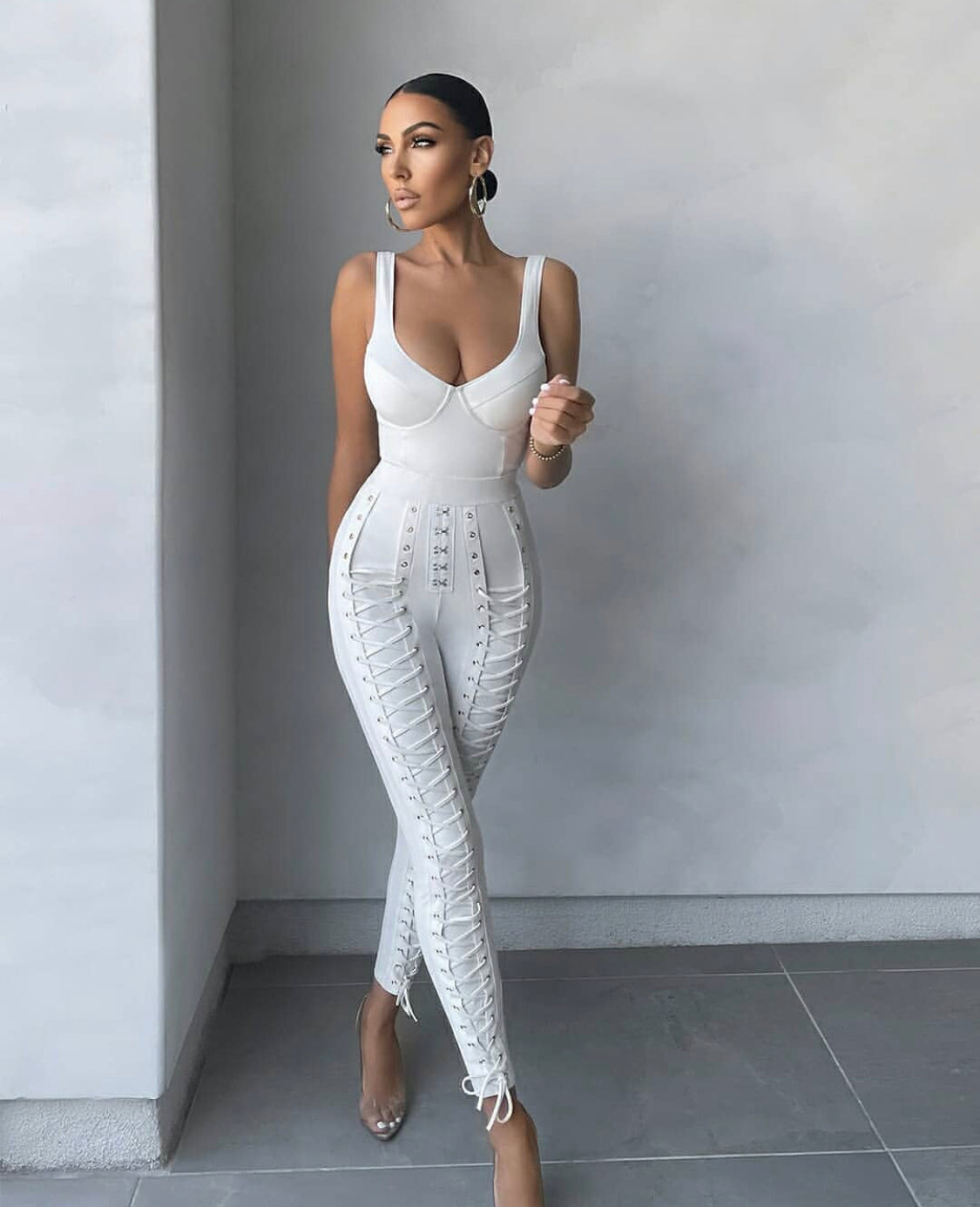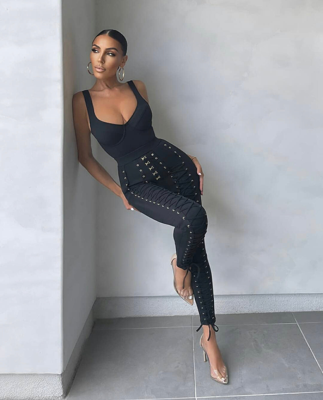 Our "Bianca Jumpsuit"  is sure to be a hit! Servin' up high voltage glamour, feature a lace-up, corset detail design and are constructed from a luxe figure-hugging jersey. It's time to take your casual wardrobe to new heights babe, get it or regret it... these are set to sell out FAST!