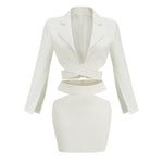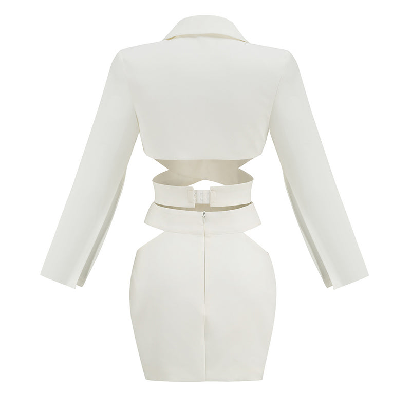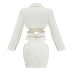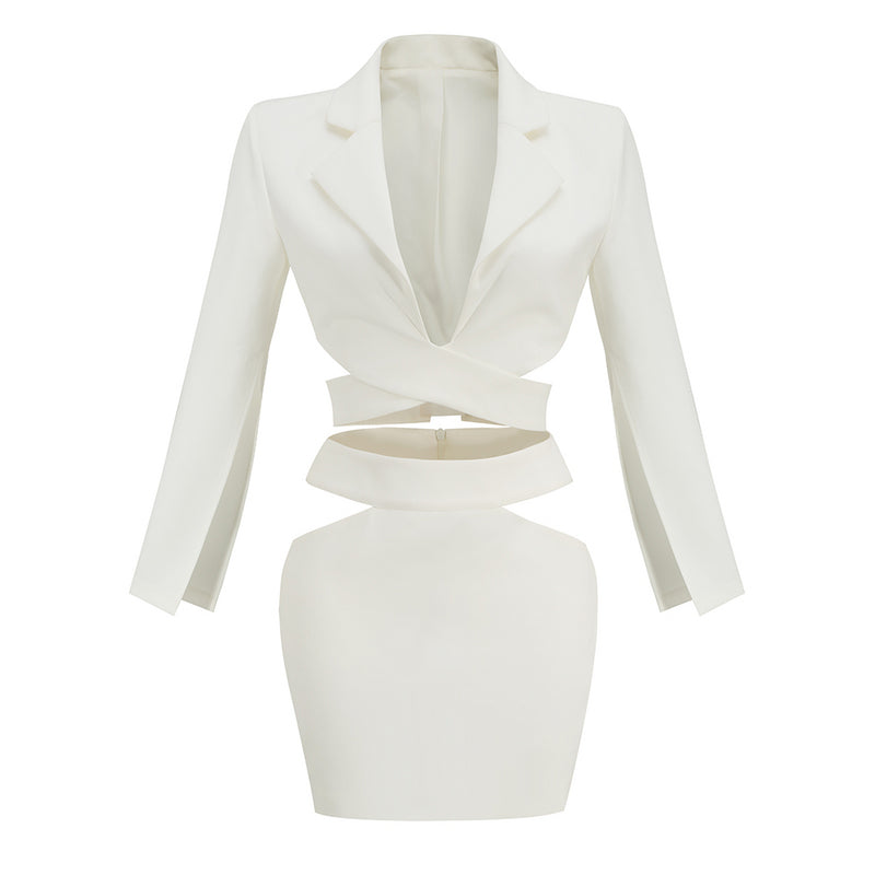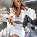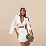 Make people stare in our Brilla Two-piece, featuring a v-neckline, long sleeves hands, and a sexy side cut out that goes through to the back—designed to enhance your curves and cinches in your waist.