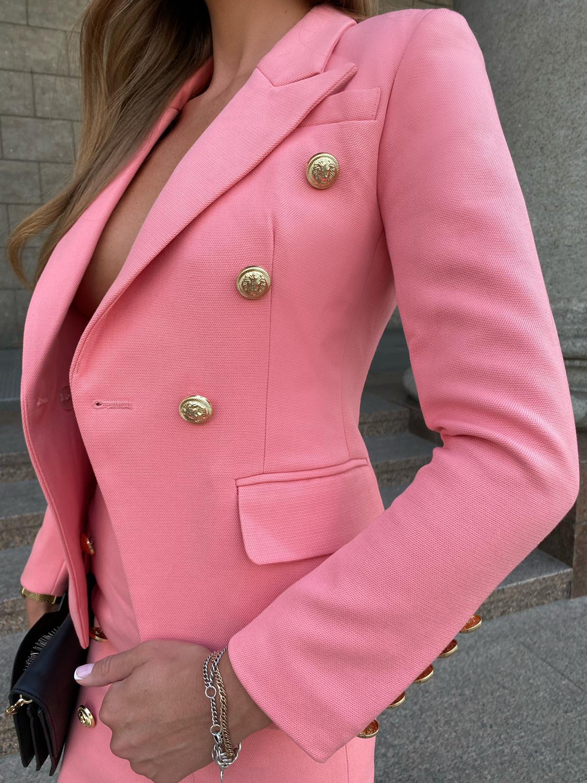 Shop our elegant and classy Jasmine two-piece set, featuring a double-breasted blazer and high waist skirt. Great for office, party, or casual outing.
